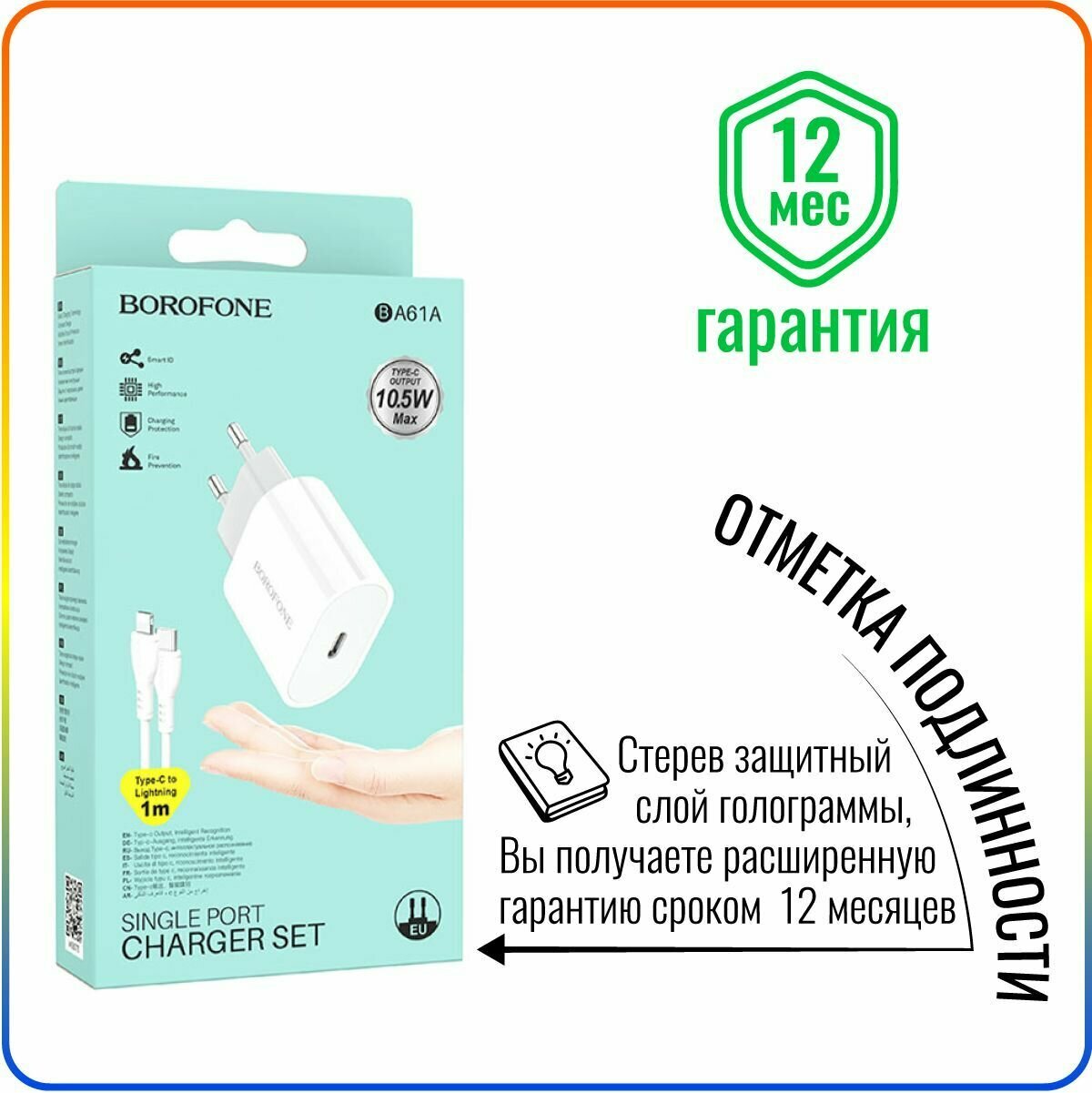 Зарядное устройство 1xTypc-C с проводом Lightning 100см. 10.5W/2.1А, Borofone BA61A Origin - белый интересное: