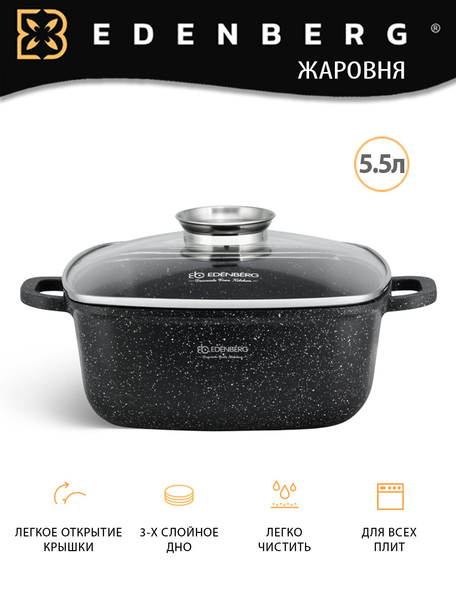 Жаровня с крышкой Edenberg 6.5 л из литого алюминия с антипригарным покрытием для всех видов плит