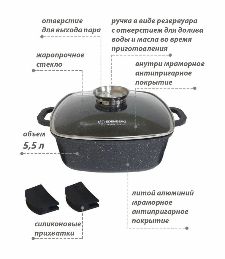 Казан квадратный Edenberg EB-8114 5.5л 26см
