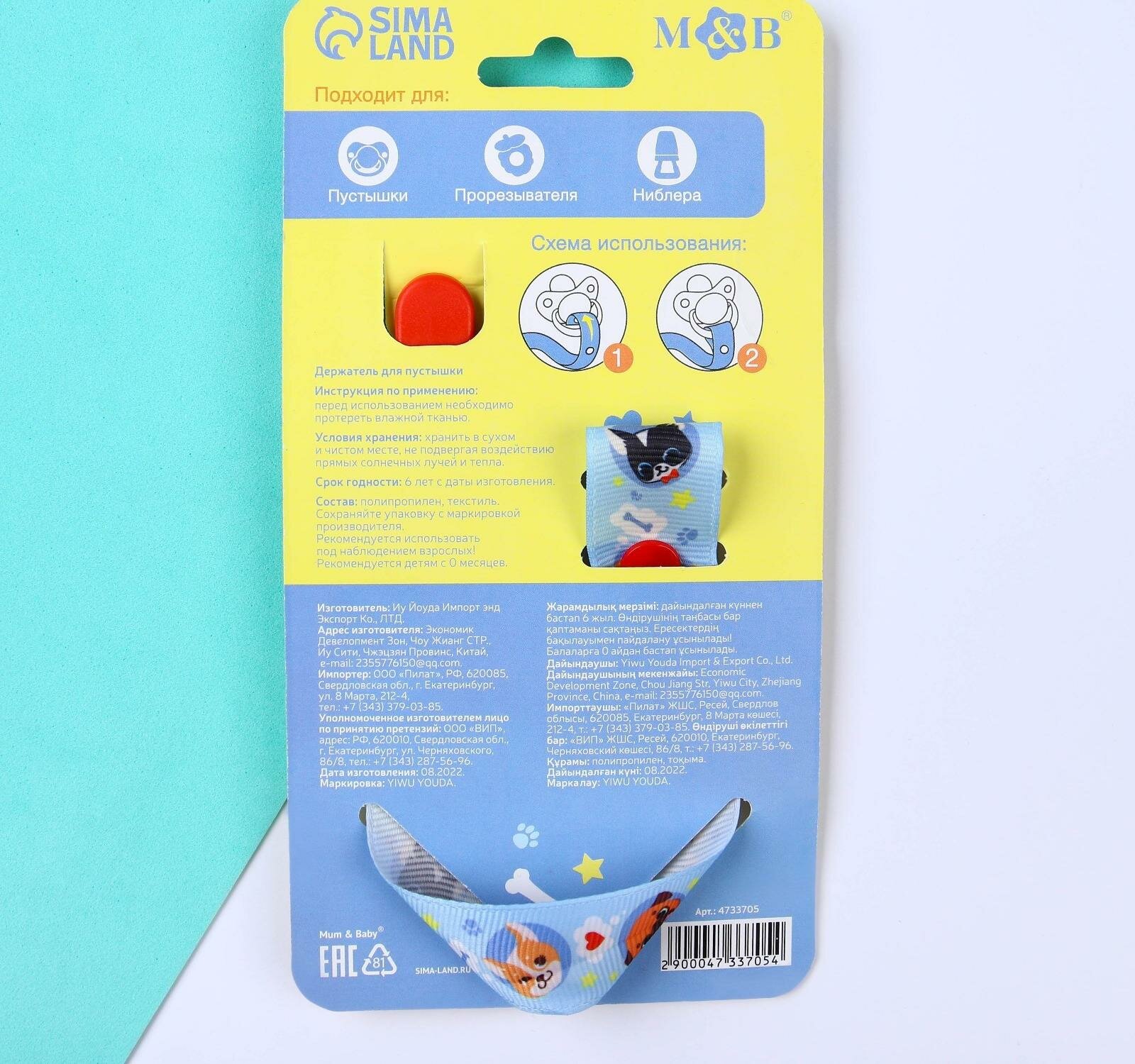 Mum&Baby Держатель для пустышки "тренд. Пёсики", на ленте интересное:
