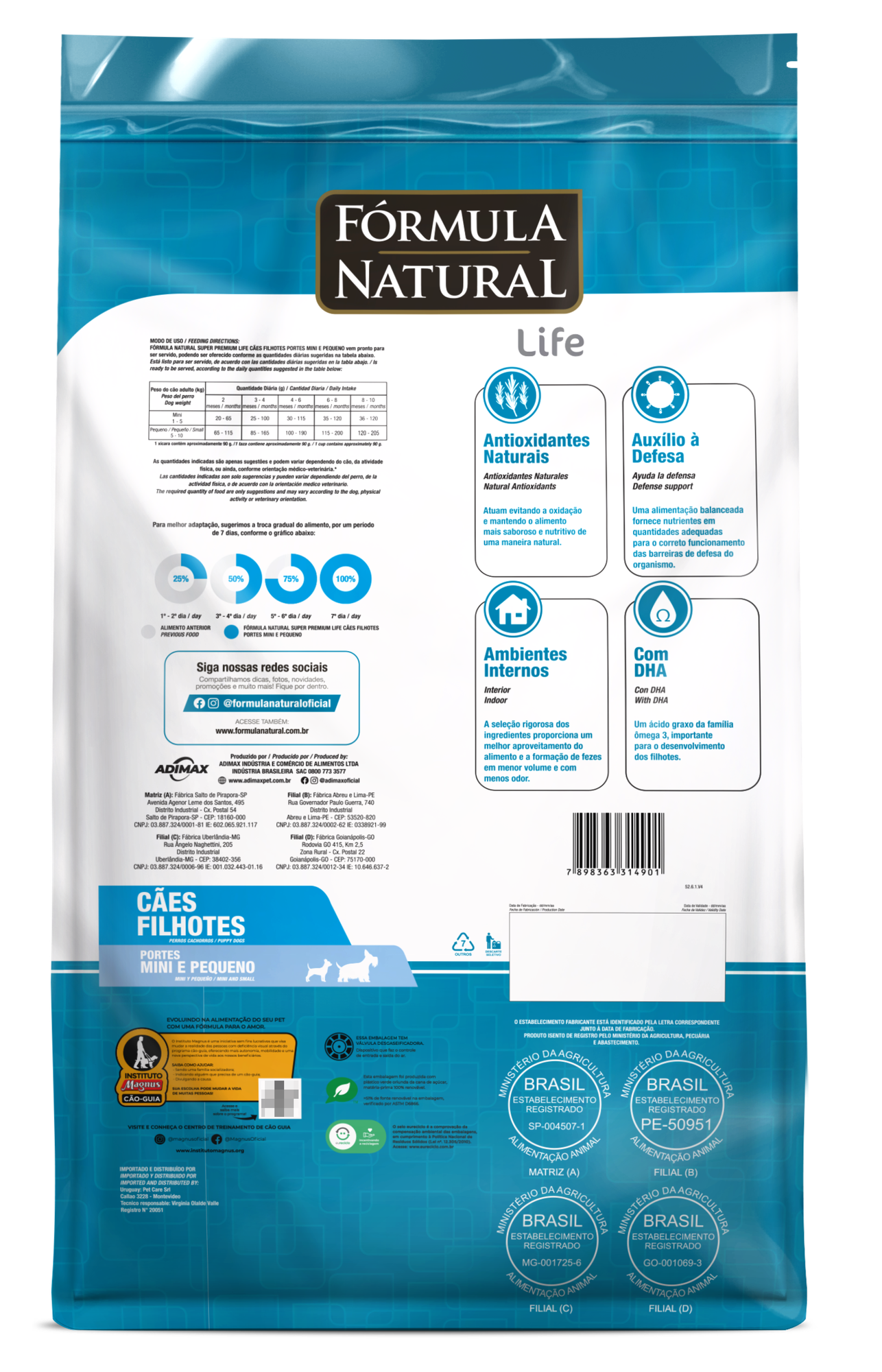 Сухой корм для щенков маленьких и мини пород, Formula Natural Life Super Premium - низкозерновой, полнорационный, с курицей, Бразилия, 80 гр