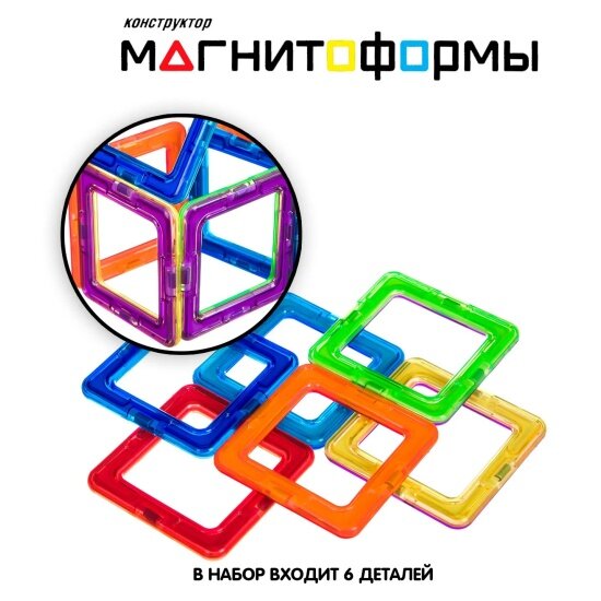 Магнитный конструктор Магнитоформы (6 квадратов) Bondibon ВВ4398