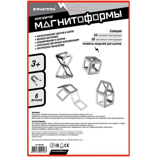 Магнитный конструктор магнитоформы Bondibon, 6 квадратов, CRD 26x17 см, арт.JH8842E