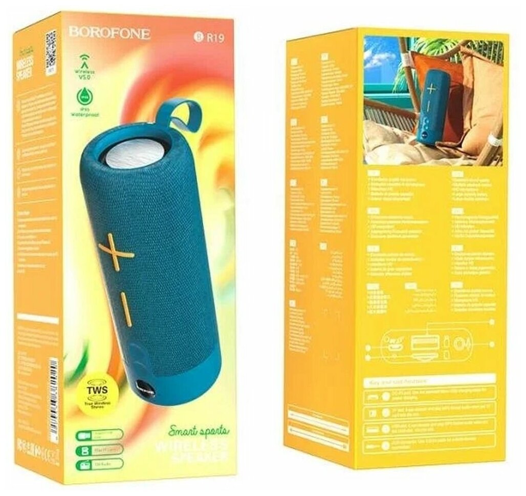 Портативная беспроводная акустическая колонка BOROFONE BR19 Euphony sports BT speaker, бирюза