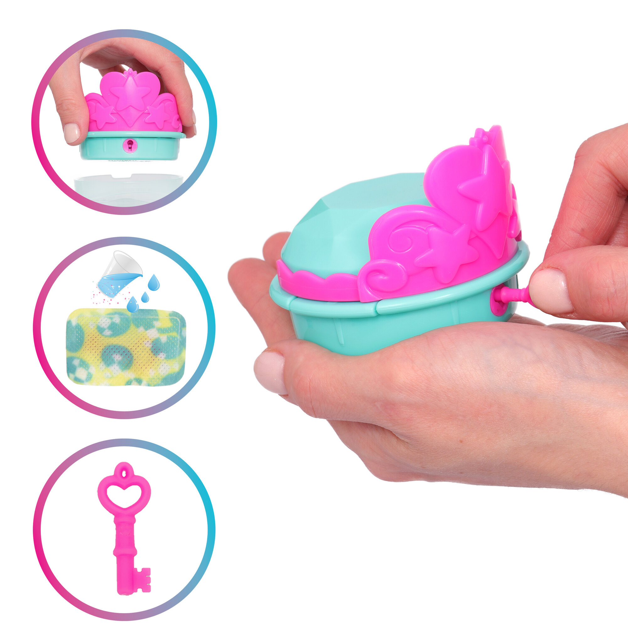| Комплектация | кукла, стакан-бассейн, крышка-шкатулка, браслет, шарм, ключ |