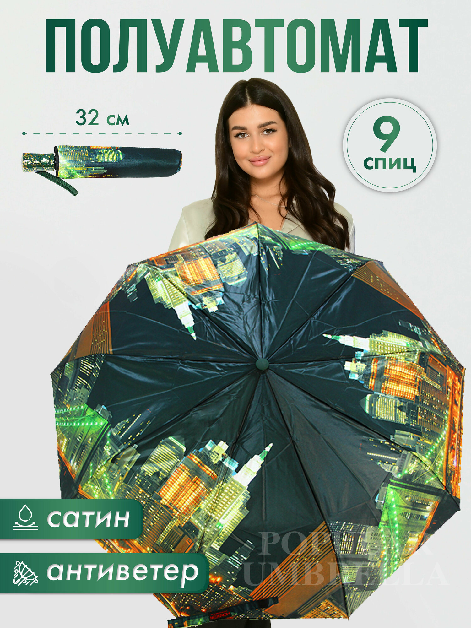 СохранитьЗонт женский полуавтомат, зонтик взрослый складной антиветер M8044, зеленый интересное:
