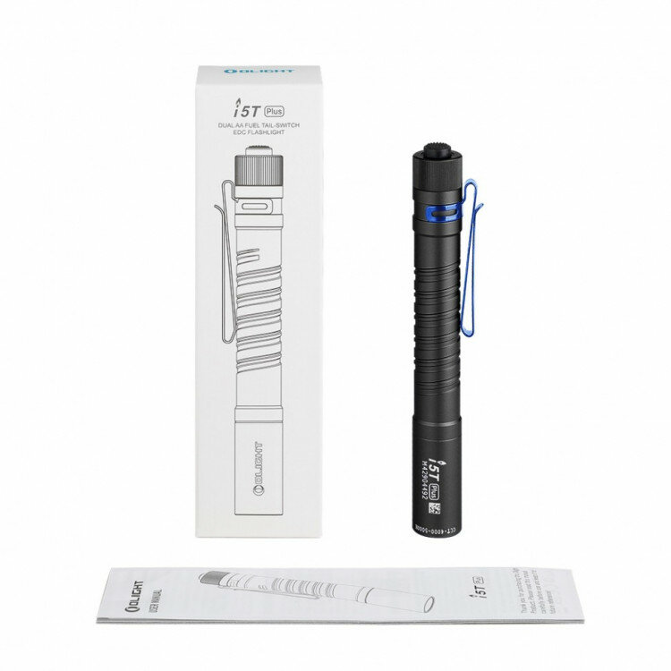 | Подробная комплектация | Фонарь Olight i5T Plus, 2 алкалиновые батарейки АА, клипса, упаковка. |