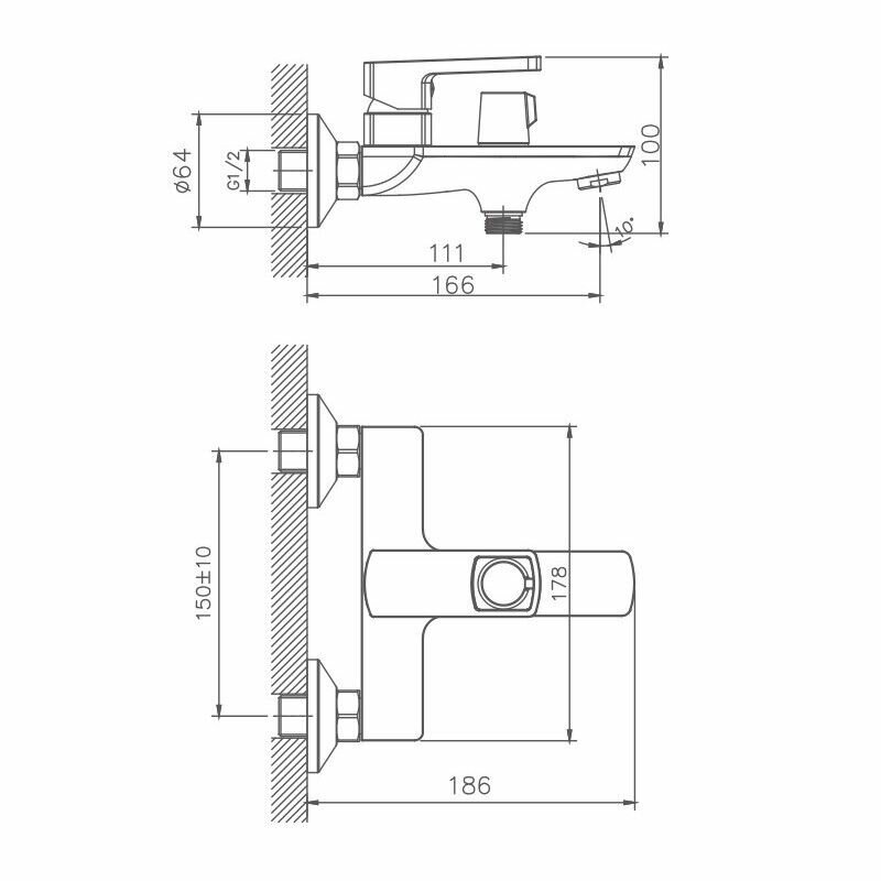 Смеситель для ванны, хром HB60176