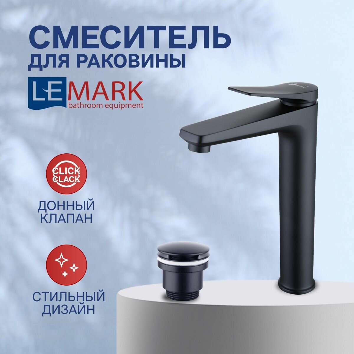 Смеситель Lemark Bronx Lm3709bl для умывальника высокий, монолитный, черный .