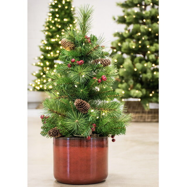 Ель настольная "Эвридей" с шишками и ягодами, в мешочке, 81 см, 50 тёплых белых LED-огней, (хвоя леска+PVC), батарейки, National Tree Company