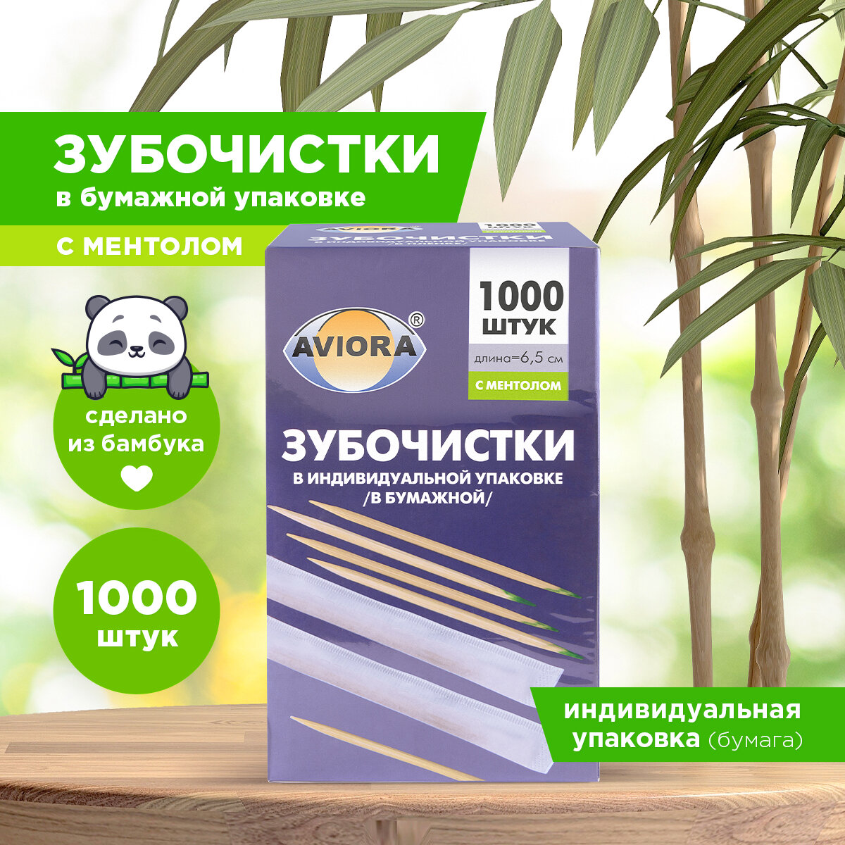 Зубочистки Aviora бамбук, в индивидуальной упаковке, с ментолом, 1000 шт