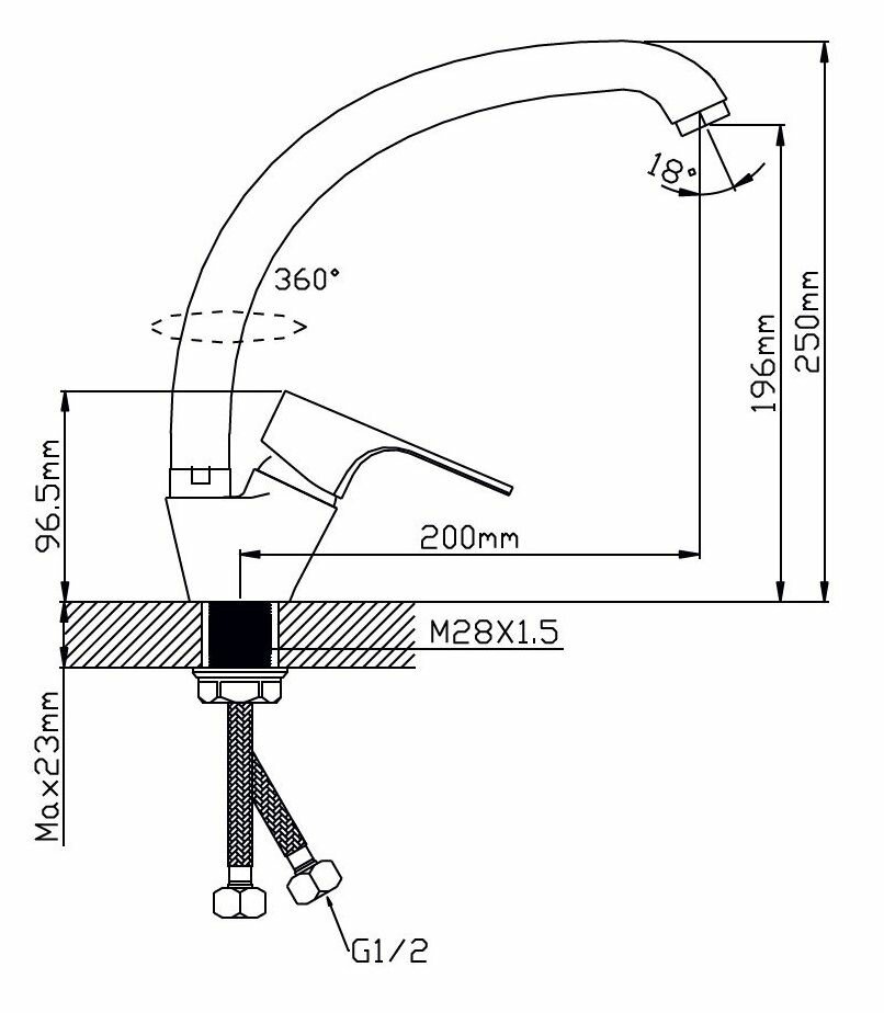 Р59222-9 Смеситель для кухни с высоким изливом с гайкой
