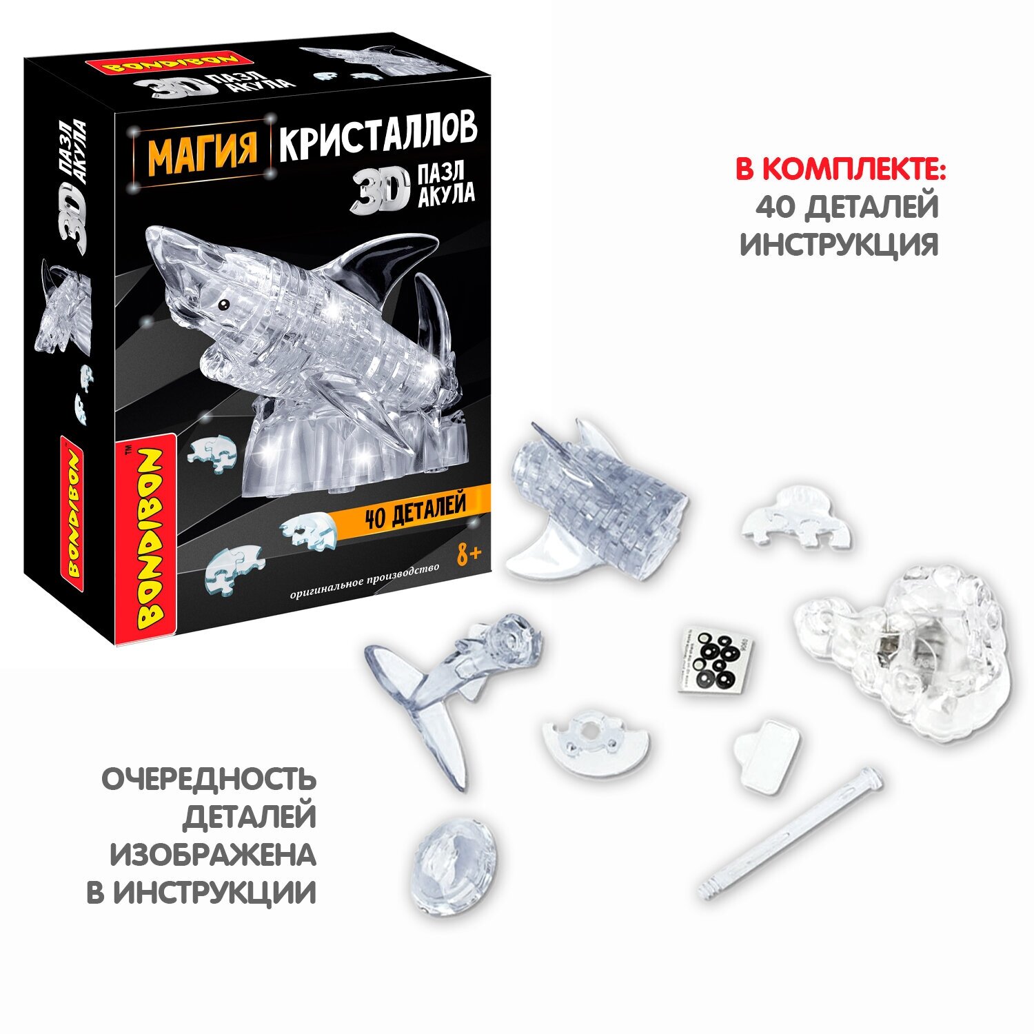 Пазл 3D Bondibon Магия Кристаллов "акула", 40 деталей, прозрачный (ВВ5236)
