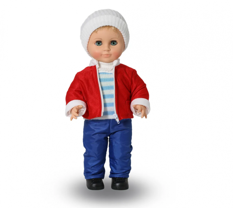 | Комплектация | кукла, трикотажная футболка, брюки, свитер вязаный, зимняя куртка из плащевой ткани, рукавицы, шапка, шарф, трикотажные носочки и трусы, сапоги-«дутики»; дополнительные комплекты одежды: демисезонная куртка, шапка вязаная, кроссовки чёрного цвета, шорты, кепка, кроссовки белого цвета |
