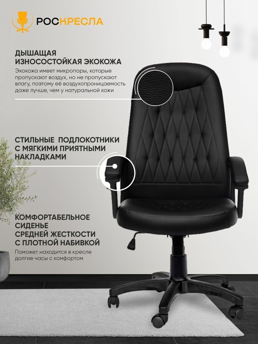 Купить Компьютерное кресло руководителя РосКресла Джокер офисное, обивка: искусственная кожа, цвет: черный