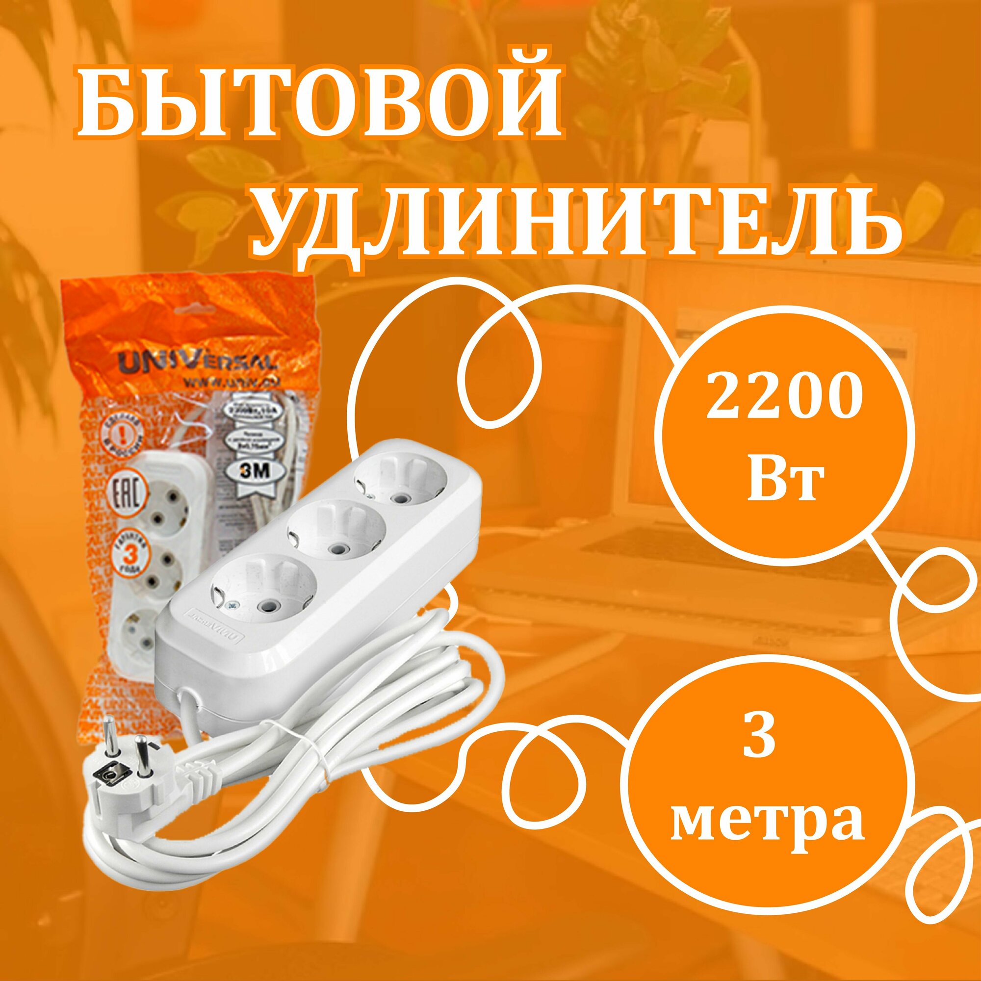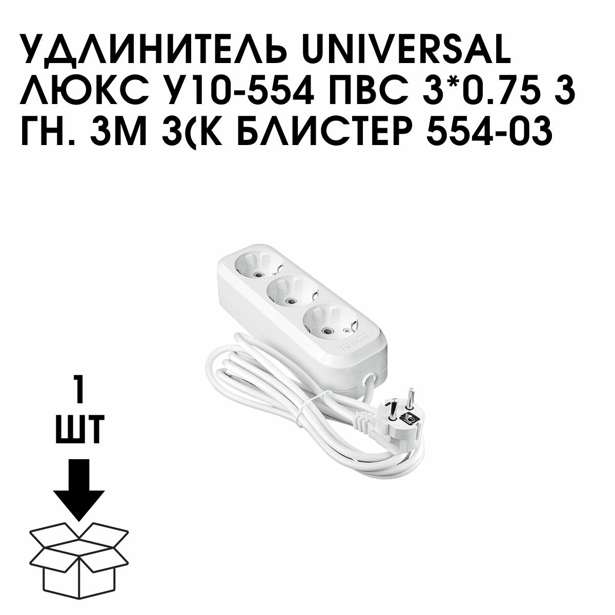 Удлинитель UNIVersal У10-554 (554-03), 3 розетки, 3 м, с/з, 10А / 2200 Вт