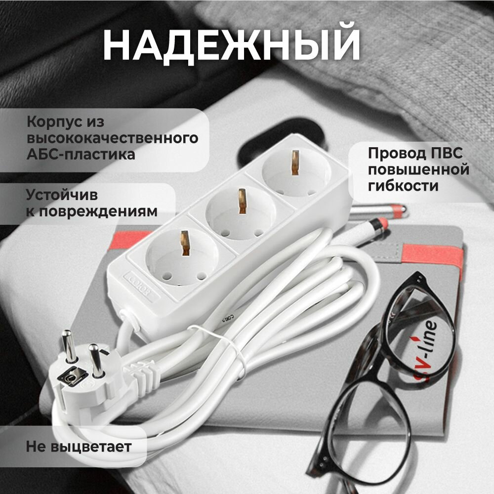 Удлинитель бытовой 3 гнезда, 3 м, ПВС, 3х0.75 мм², с заземлением, UNIVersal, У10, 554-03