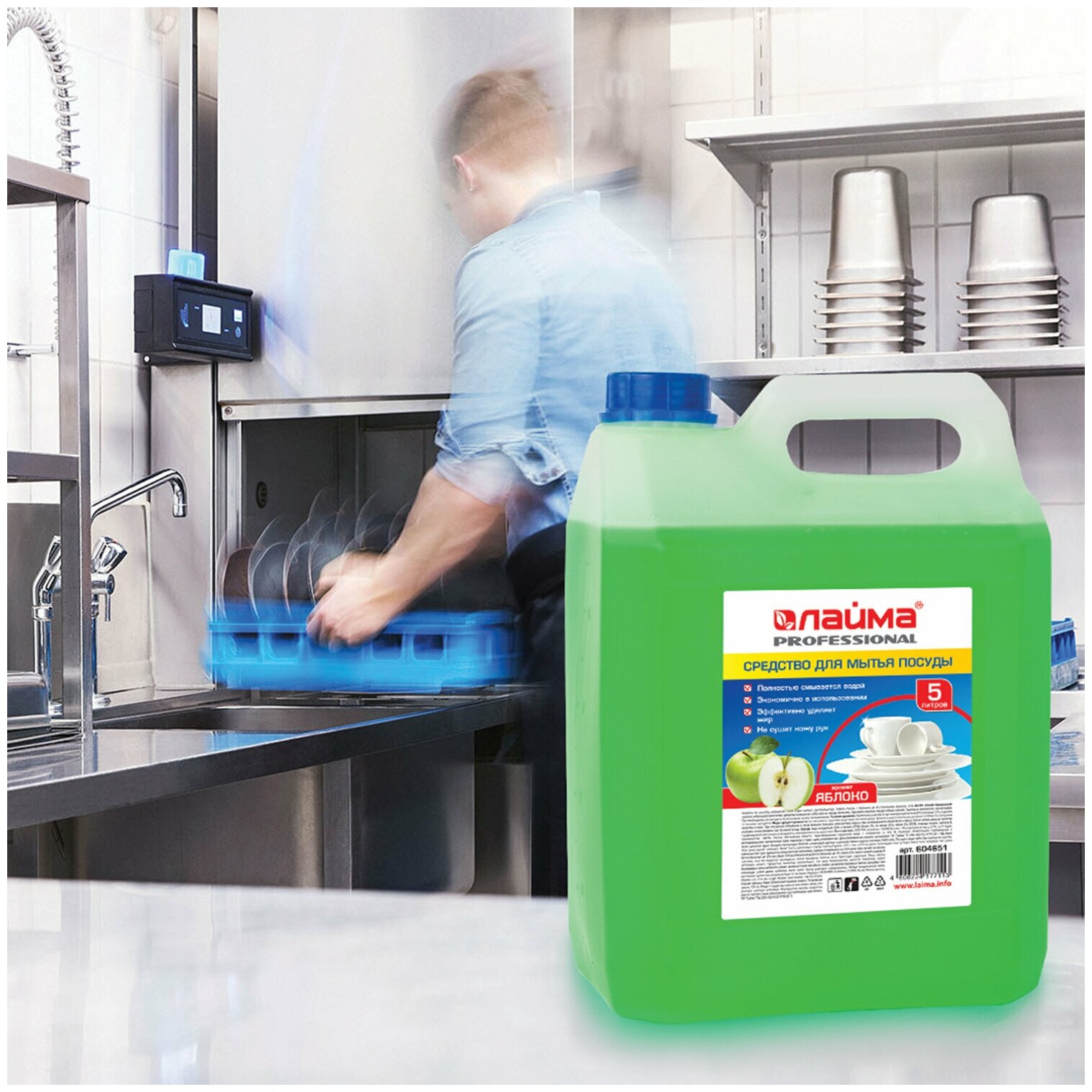 Купить Средство для мытья посуды 5 л, LAIMA PROFESSIONAL, концентрат, "Яблоко", 604651