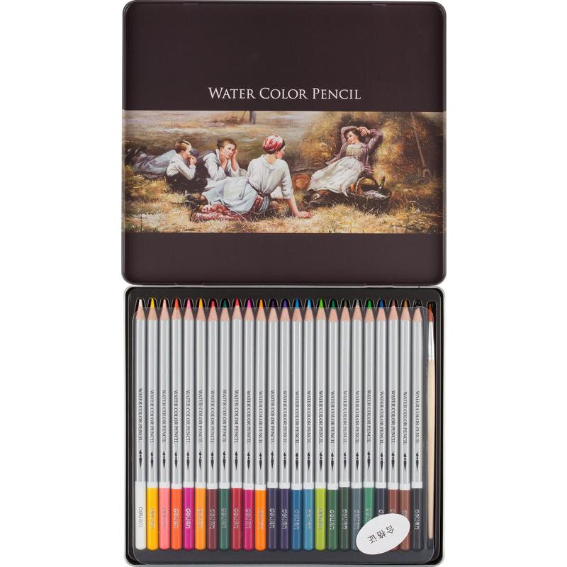 Deli Карандаши акварельные Nuevo 24 цвета в металлической коробке (6521) серебристый