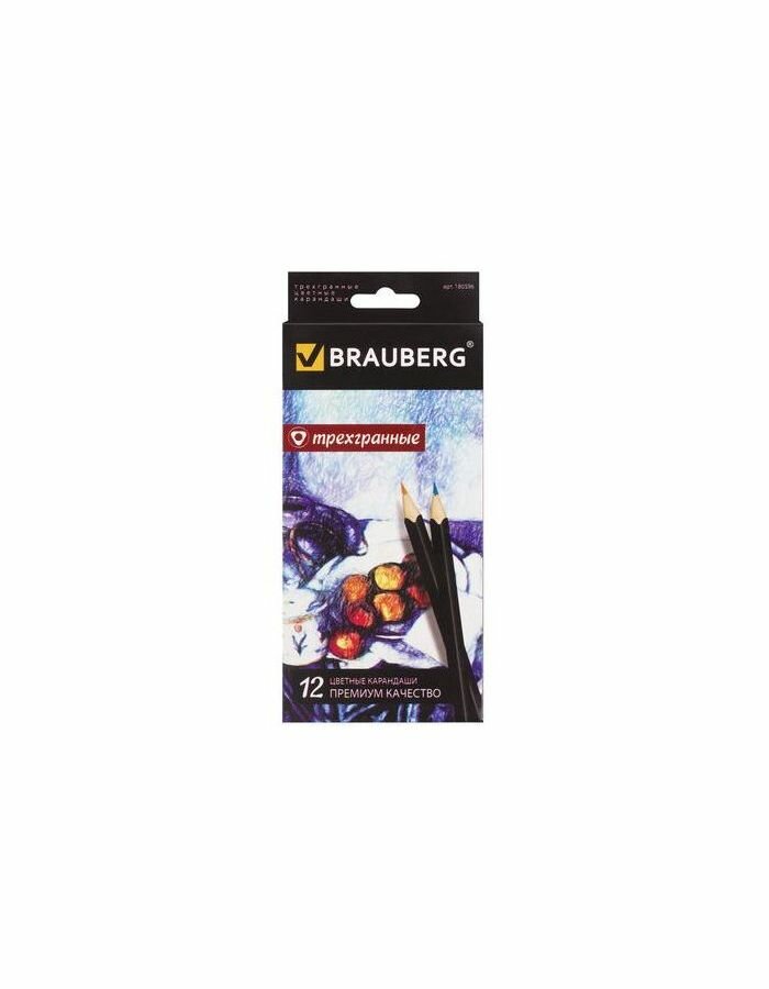 Карандаши цветные BRAUBERG "Artist line", 12 цветов, трехгранные, черный корпус, высшее качество, 180596 В комплекте: 1шт.