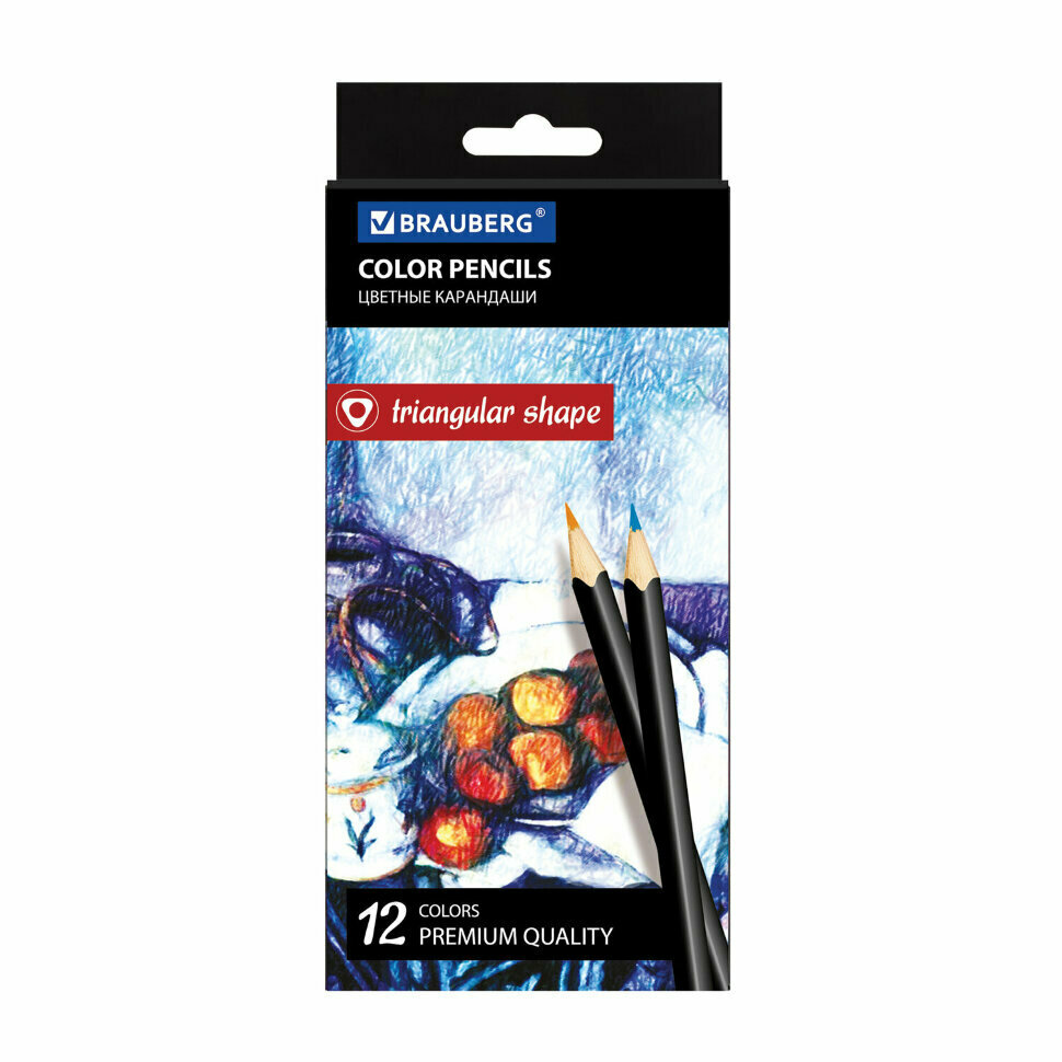Карандаши цветные BRAUBERG "Artist line", 12 цветов, трехгранные, черный корпус, высшее качество, 180596 (цена за 1 ед.товара)