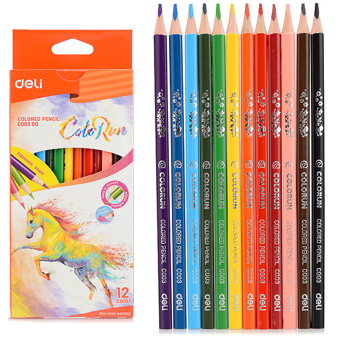 Карандаши цветные Deli ColoRun, трехгранные, тополь, 12 цветов (EC00300)