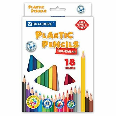 Купить Карандаши цветные пластиковые BRAUBERG PREMIUM, 18 цветов, трехгранные, грифель мягкий 3 мм, 181662, 1 шт