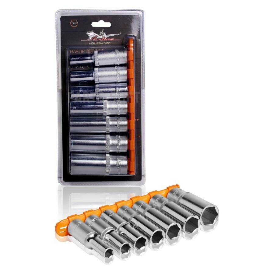 Набор головок торцевых 1/2" DR шестигранных 7пр. глубоких (10,12,14,15,17,19,22мм) AT-7-34 AIRLINE