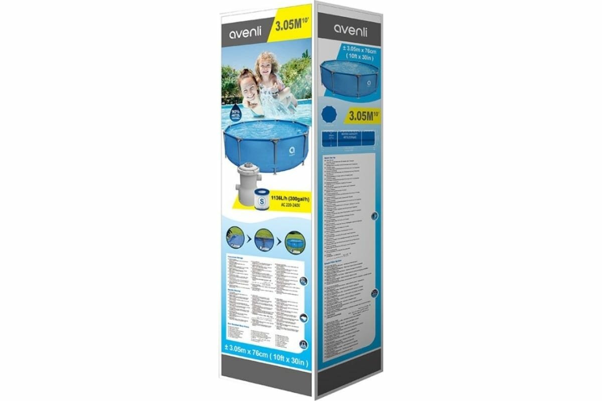 Круглый бассейн Avenli 12015eu со стальным каркасом, 3.05 м х 76 cм, фильтр-насос 300 галлонов 104376