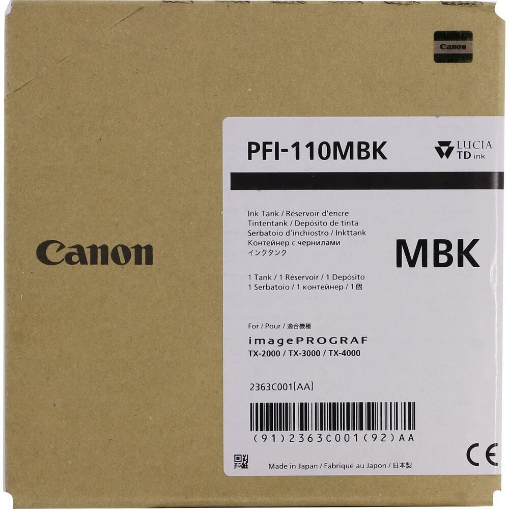 Картридж струйный Canon PFI-110 MBK 2363C001 черный матовый (160мл) для Canon TX-2000/TX-3000/TX-4000 2363C001