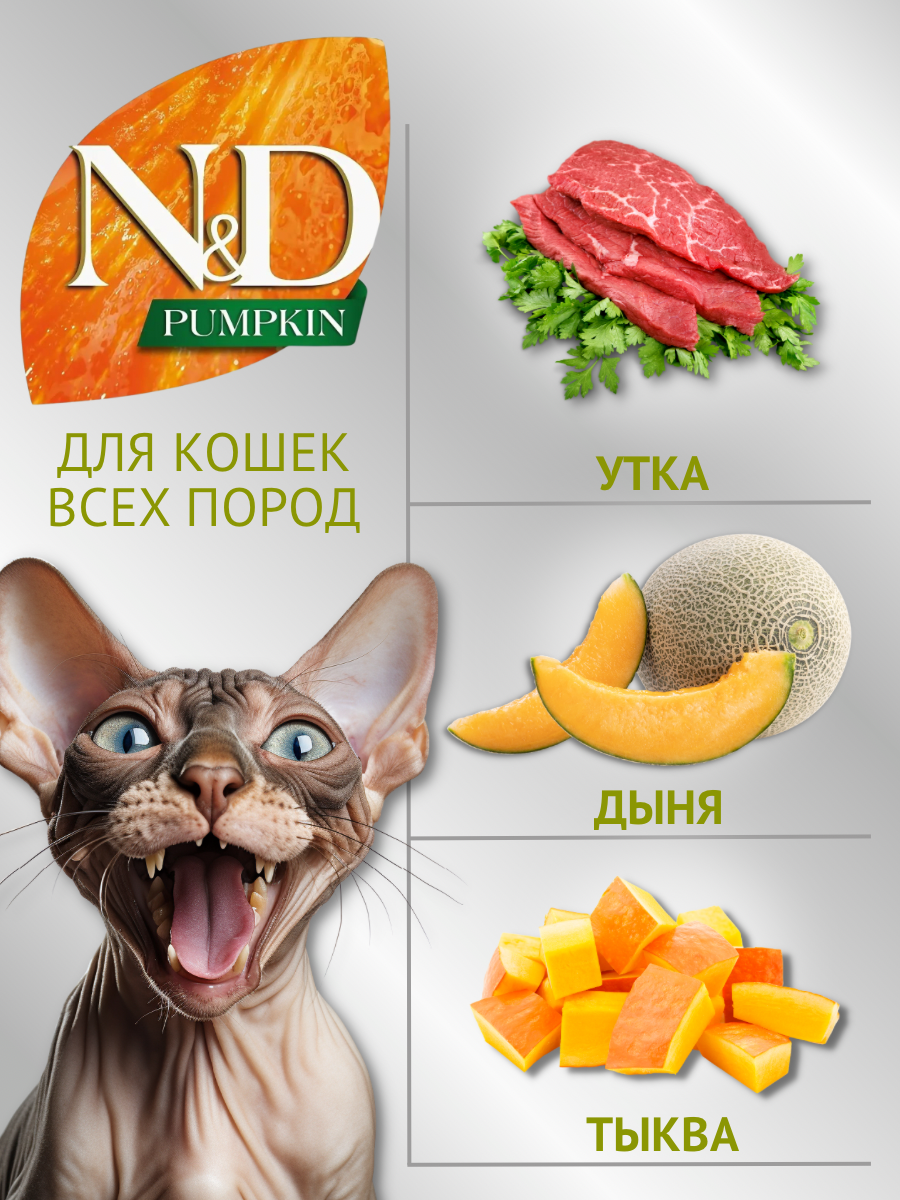 Farmina N&D Cat Pumpkin Duck&Cantalupe Adult корм для взрослых кошек Утка, тыква и дыня, 1,5 кг.