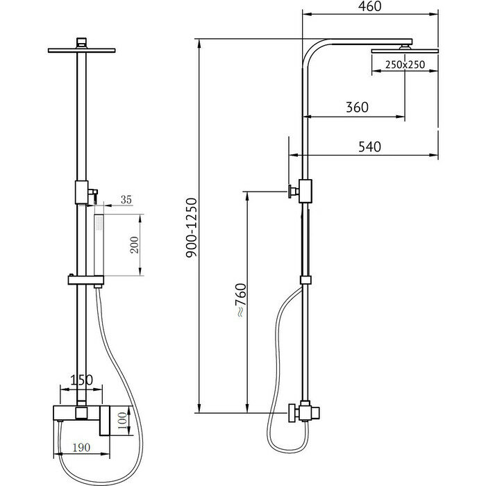 | Форма верхнего душа | квадратная |