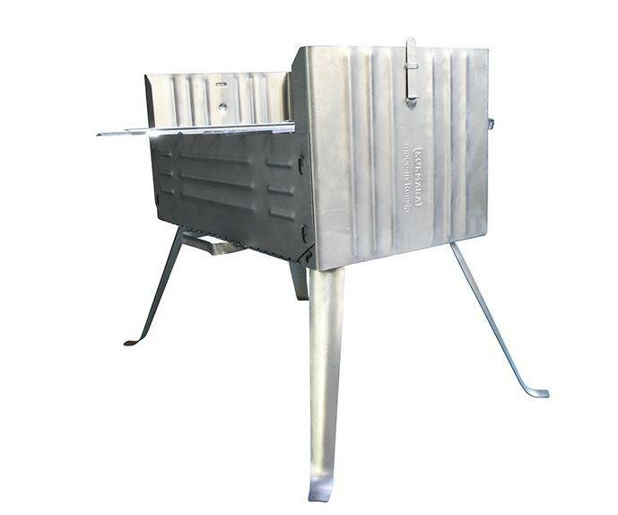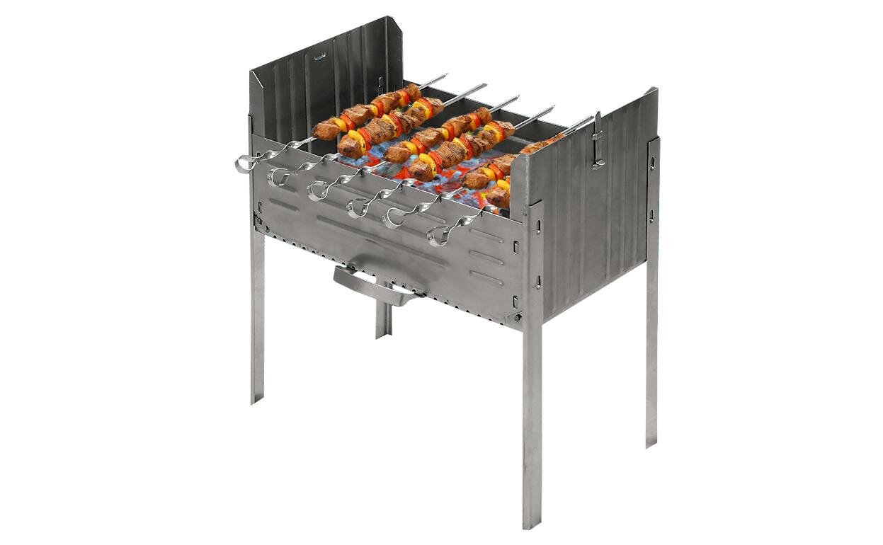 | Плюсы: | Боковые стенки (те, что повыше) позволяют даже кебабчик на ветру ровно прожарить |