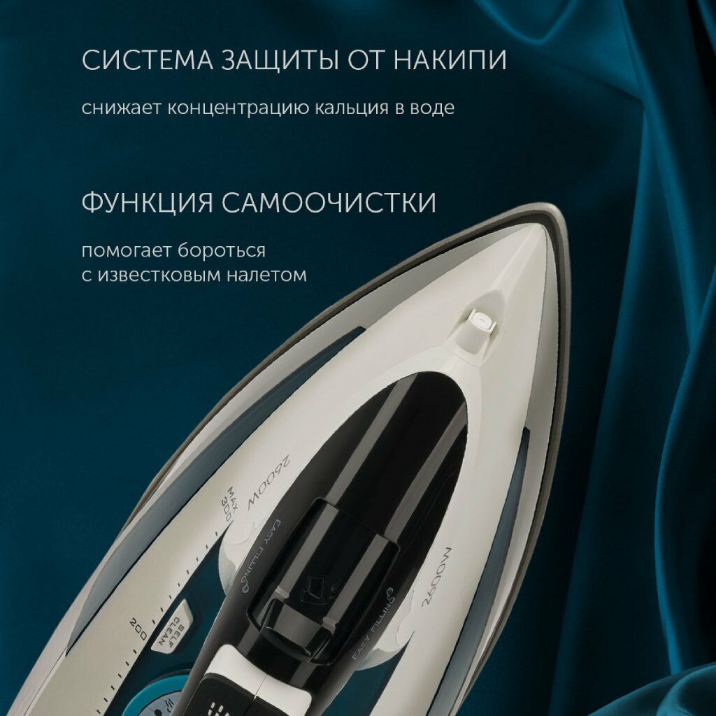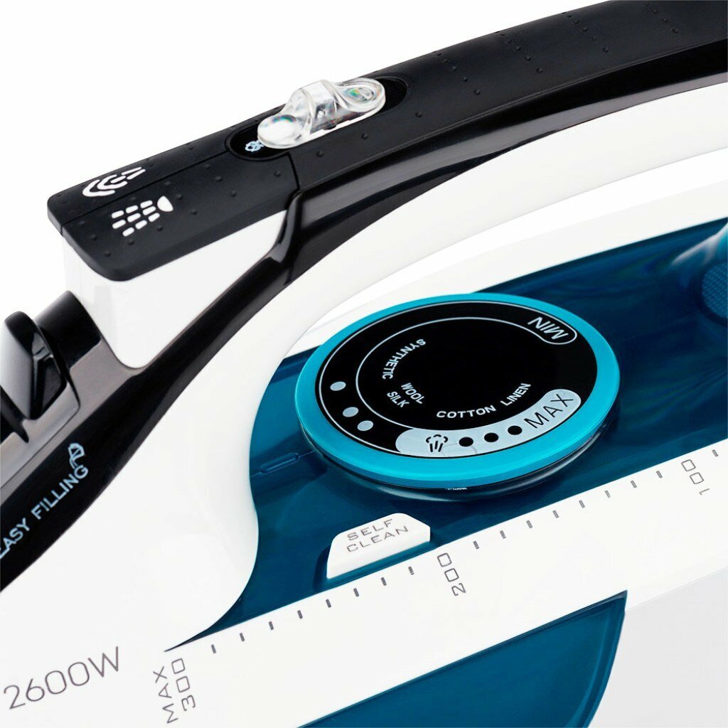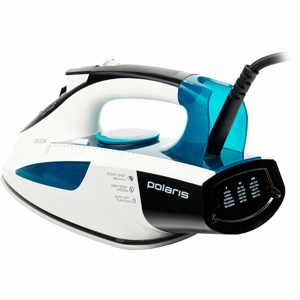 Утюг Polaris, PIR 2695AK, 2600 Вт, керамика, вертикальное отпаривание, противокапельная система, система самоочистки, защита от накипи, 3 м, белый/бирюзовый. 397061 интересное: