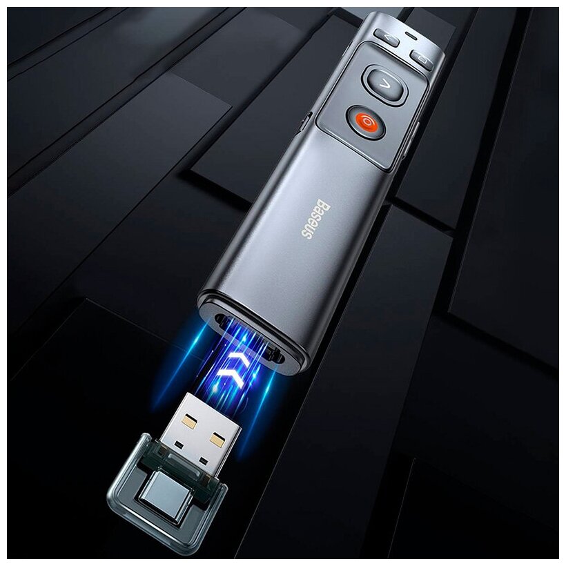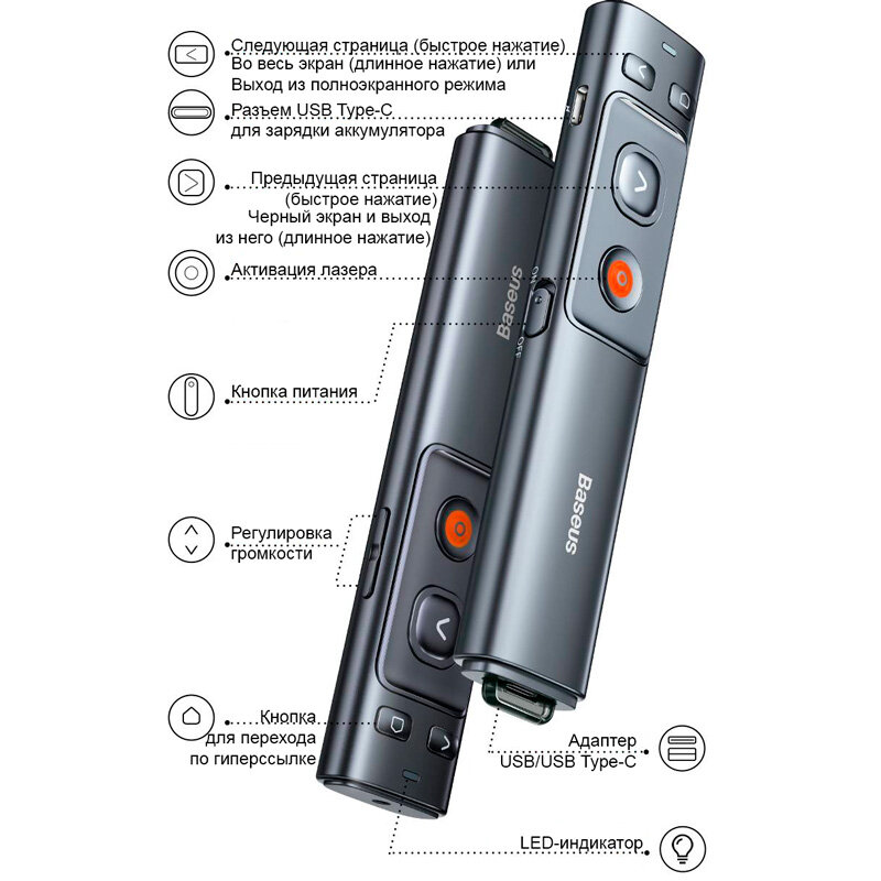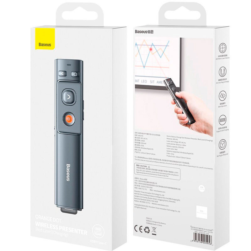 Лазерная указка-презентер беспроводная USB Baseus Orange Dot Wireless Presenter Red Laser Charging Серая интересное: