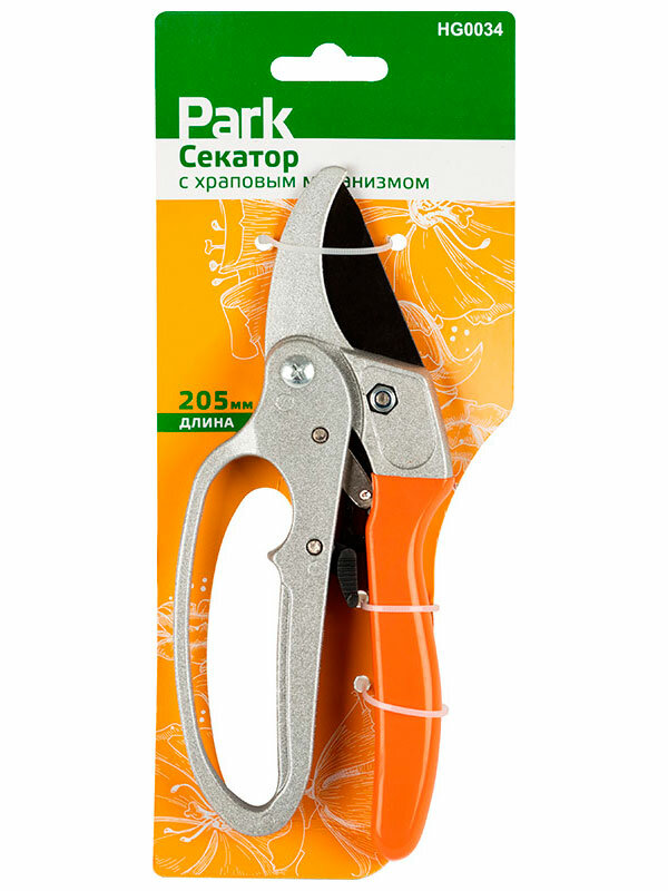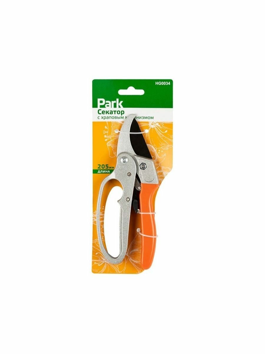 Секатор садовый PARK HG0034, сталь, храповый механизм, длина: 205 мм, диаметр реза: до 10 мм