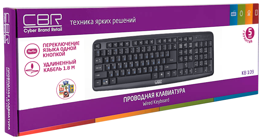 CBR KB 109 Black USB {Клавиатура, 104 кл., офисн., переключение языка 1 кнопкой (софт), USB. Длина кабеля 1,8м}