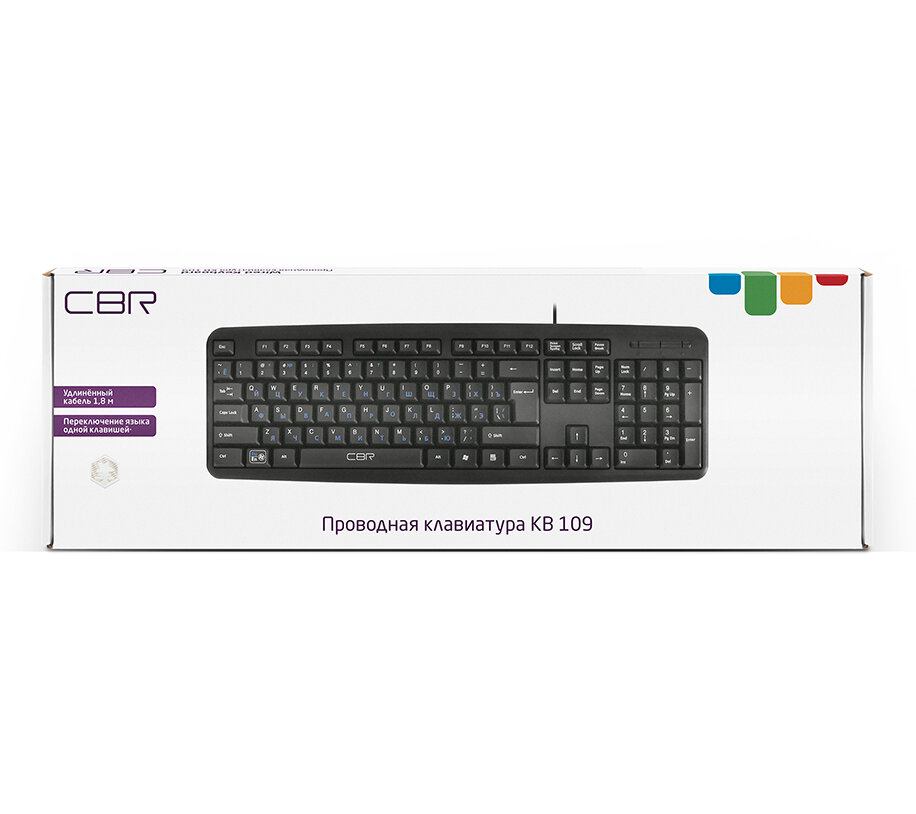 CBR KB 109 Black USB {Клавиатура, 104 кл., офисн., переключение языка 1 кнопкой (софт), USB. Длина кабеля 1,8м}