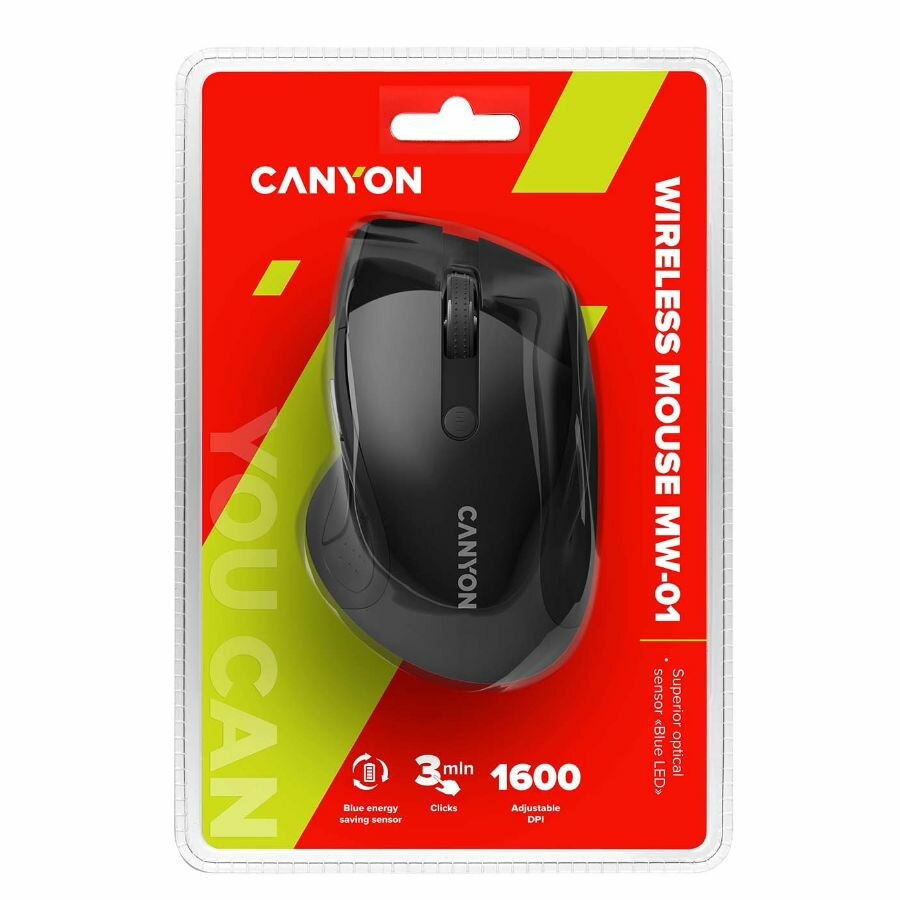 Беспроводная мышь Canyon MW-01 1600dpi, радиоканал, 97 г, черный CNS-CMSW01B