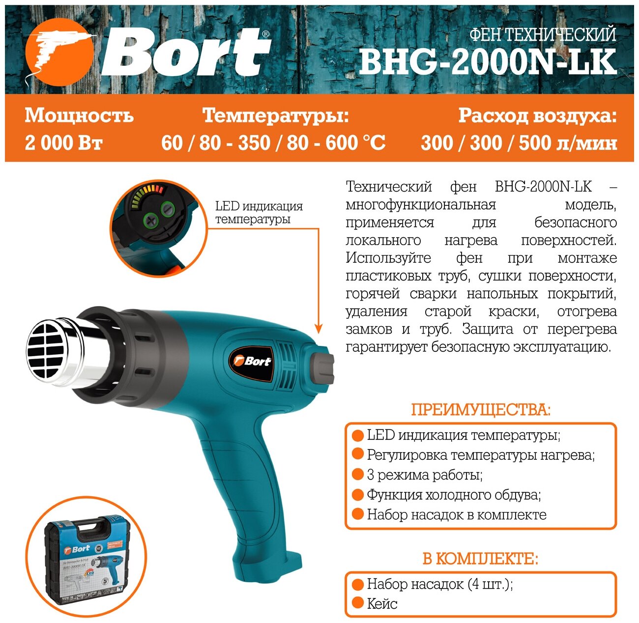 Технический фен Bort BHG-2000N-LK 2000Вт темп.60-600С