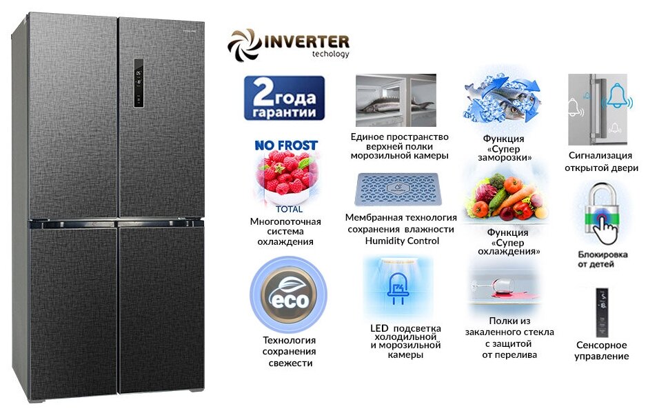 Холодильник Side by Side HIBERG RFQ-490DX NFXq inverter интересное: