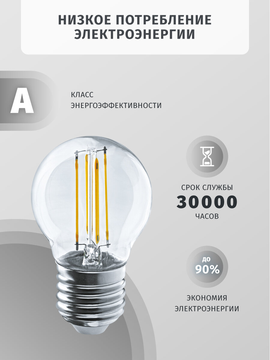 Лампа светодиодная Navigator Filament 71 310, 4 Вт, шар Е27, теплый свет 2700К, упаковка 10 шт.