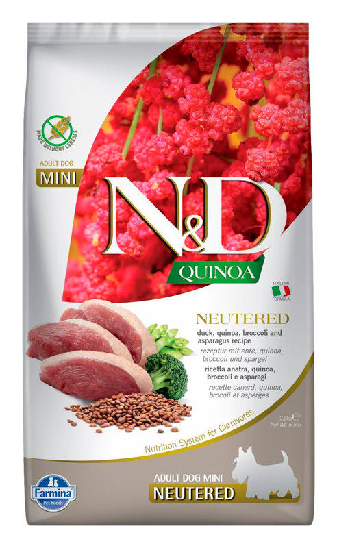 Сухой корм для стерилизованных собак Farmina N&D Quinoa, утка/брокколи/киноа для мелких пород 2,5 кг интересное:
