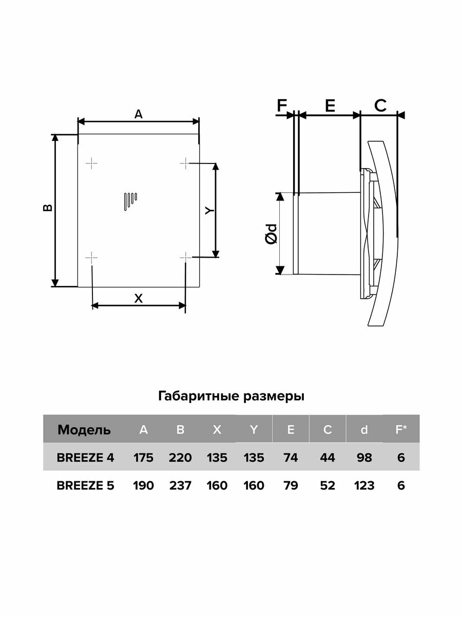 BREEZE 4C MRH вентилятор вытяжной бесшумный вытяжной с таймером и датчиком влажности, c обратным клапаном на шарикоподшипниках D98