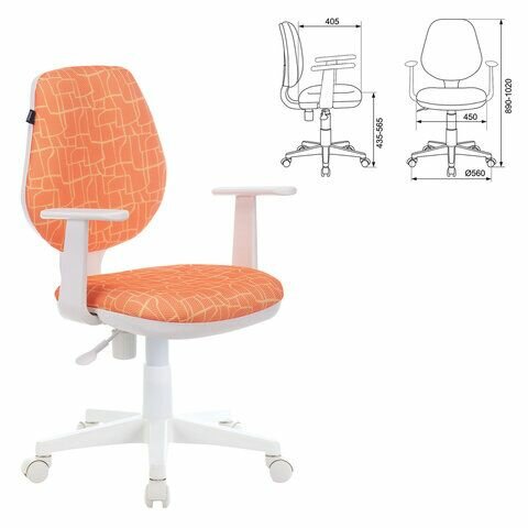 Кресло детское BRABIX Fancy MG-201W, с подлокотниками, пластик белый, оранжевое TW-96-1, 532410