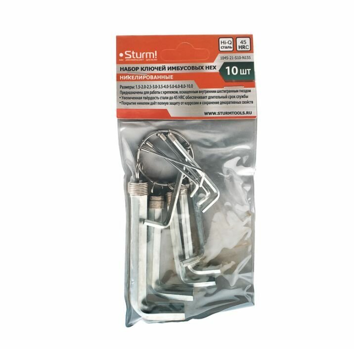 Купить Набор шестигранных ключей Sturm 1045-21-S10-N155 (имбусовые) HEX, 10шт, 1,5-10мм, никелированные, на кольце