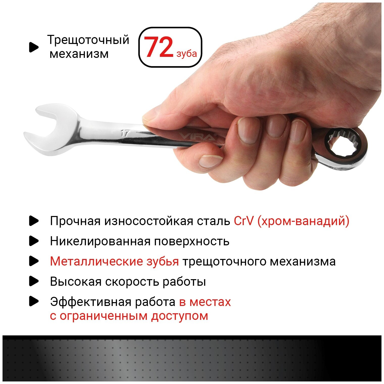 Набор трещоточных комбинированных ключей VIRA, 6 шт.