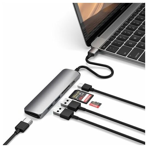 USB-C адаптер Satechi Type-C Slim Multiport Adapter V2. Интерфейс USB-C. Цвет серебристый. интересное: