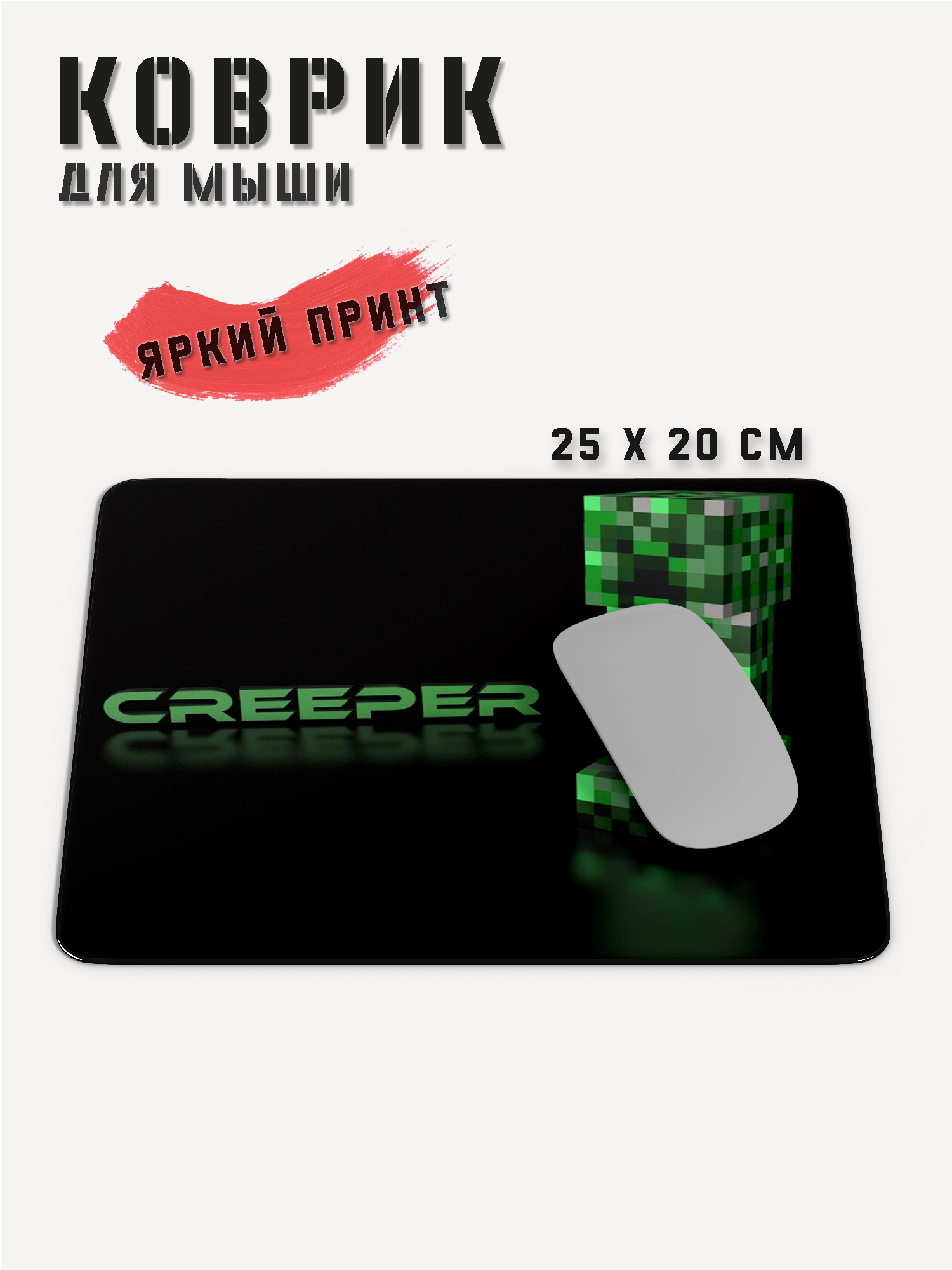 Коврик для мышки компьютерный игровой, Крипер, 250x200x3 мм