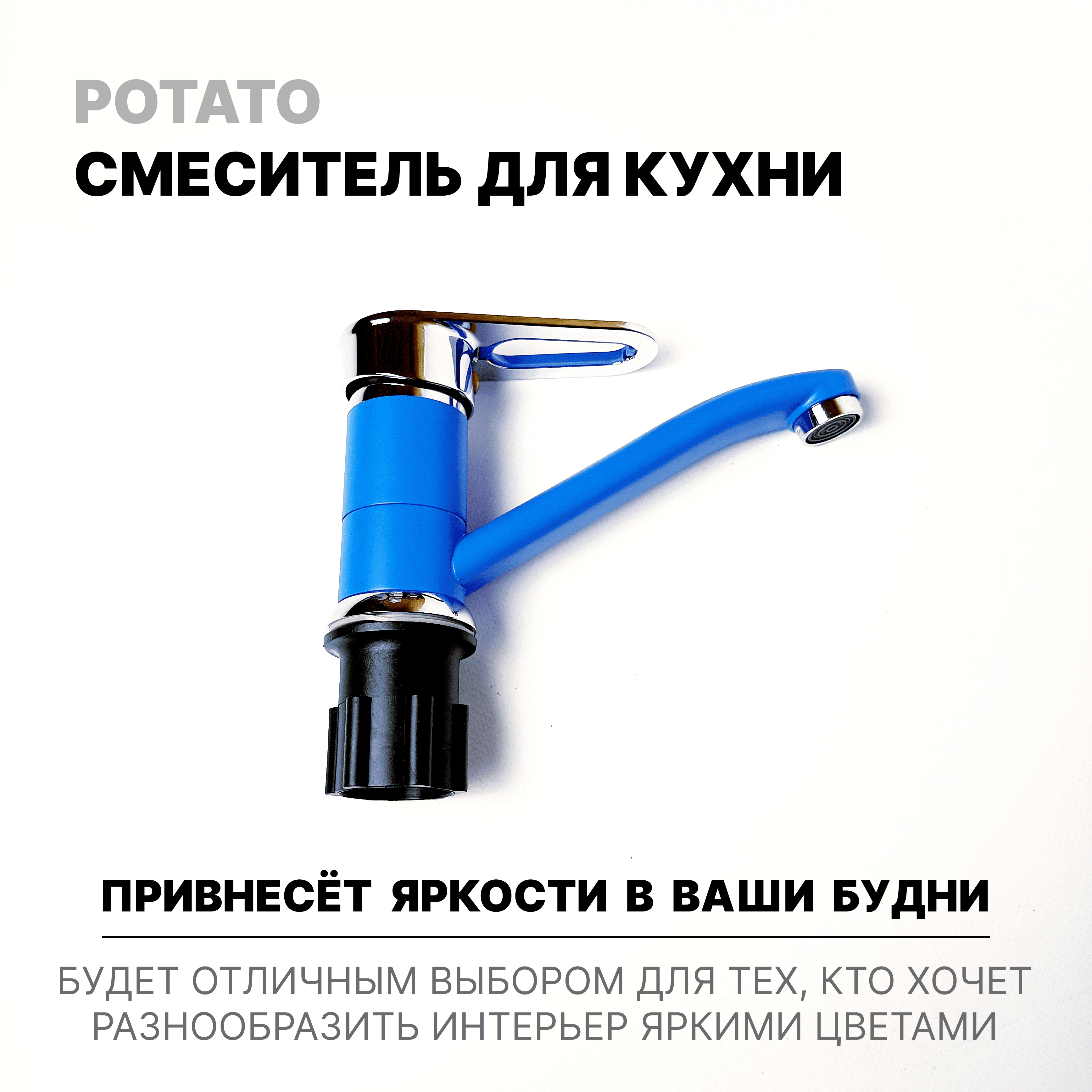 Смеситель эверест для кухни с коротким изливом, синий,
